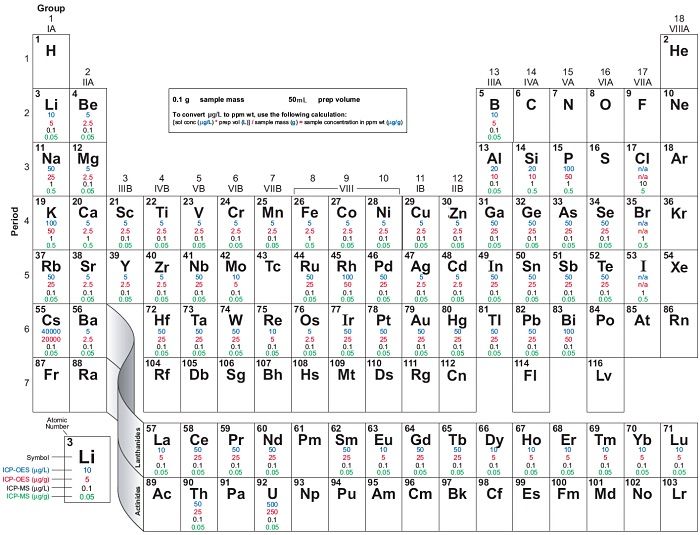 检出限:轻质量元素:<0.5 ppt;中质量元素:<0.1 ppt重质量元素:<0.1 ppt。