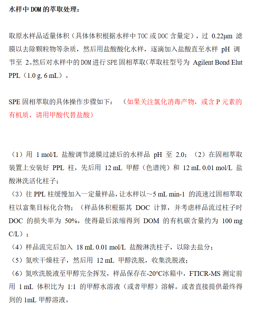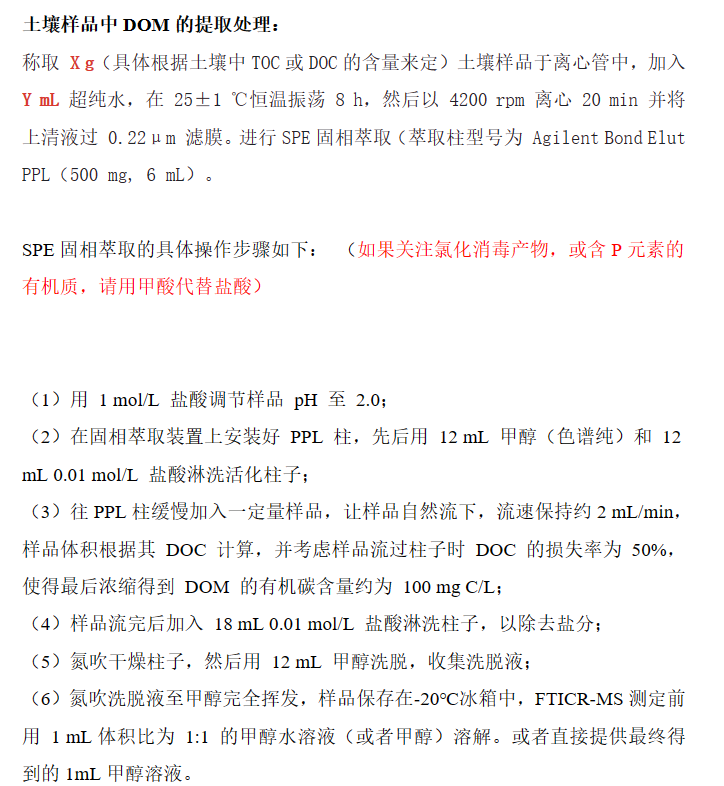 溶解性有机质(DOM)是水体或者土壤溶液中的一种常见组分,对生物地球化学和碳循环过程起着重要作用。然而由于组成复杂且难以分离,多数研究只能提供不同官能团信息以及一些分类数据,对该类化合物的组成研究非常薄弱。FT- ICR-MS是一种具有快速、稳定和超高分辨能力的质谱仪,可检测到混合物样品中数千个单独有机物组分,质荷比的分辨率达到10-6级,配合分子数据库可以精确地确定由 C、H、O、N、S、P 以及它们主要同位素所组成的各种元素组合,真正从分子元素组成层次上研究溶解性有机质组成。